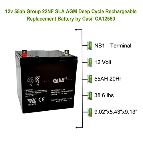 12v 55ah Group 22NF Power Boat Pontoon Electric Trolling Motor Deep Cycle Battery PowerCell PC12500 MK ES40 Powersonic Palmer Pride 600 Jazzy 1105 1107 1115 Jazzy 1100 1104 1120 2000 1170 1400
