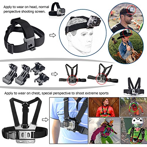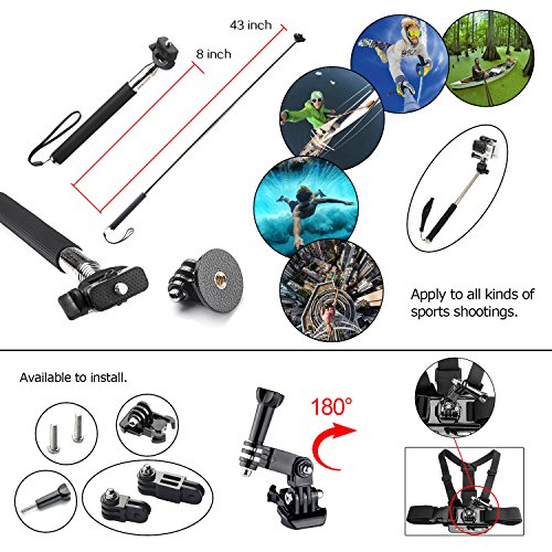 BAXIA TECHNOLOGY Essential Accessories for GoPro Hero 4 3+ 3 2 Black Silver Accessory Kit for GoPro 4 3+ 3 2 1 Sports Camera Accessories Bundle Kit for SJ4000 SJ5000 SJ6000