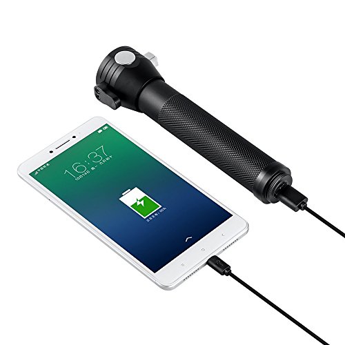 - Solar Rechargeable Emergency Power Bank: flashlight with built-in 2000mAh 18650 battery, could be charged with included USB Cable (4- 5hrs) or Solar Power (30hrs).