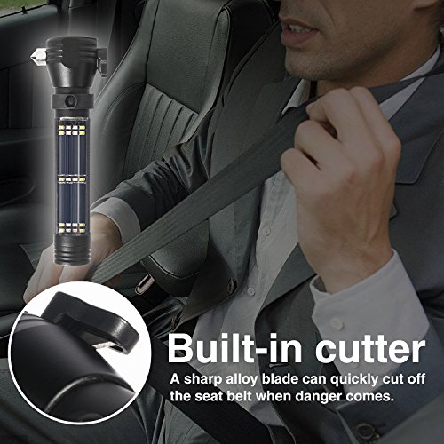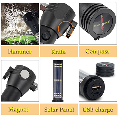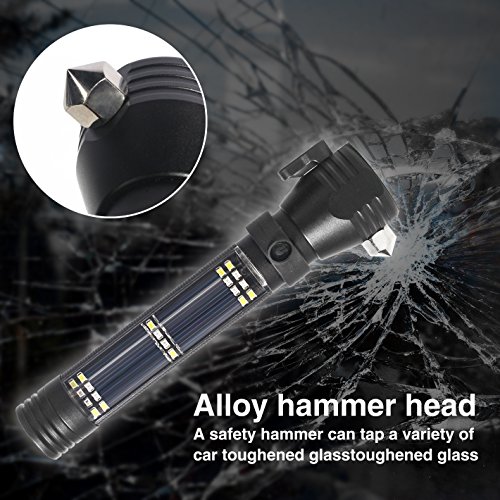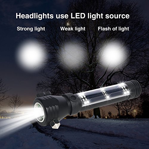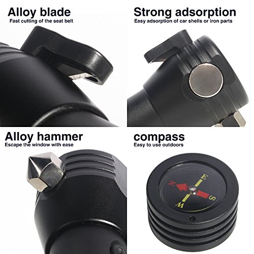 - Multi Function All In One: attack hammer for car emergency escape in emergencies; built in compass and light flasher helps you not to loss in the dark; powerful magnet on the side of the flashlight head could be attached to the car or other metallic surface.