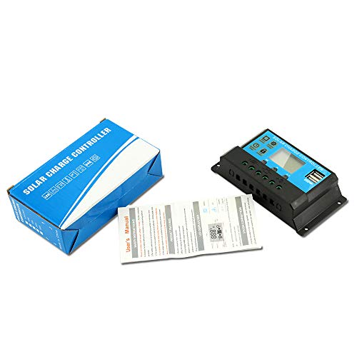 30A Solar Charge Controller 12V/24V Auto, Solar Panel Battery Controller 30Amp PWM Solar Regulator with Dual USB LCD fit for Small Solar System