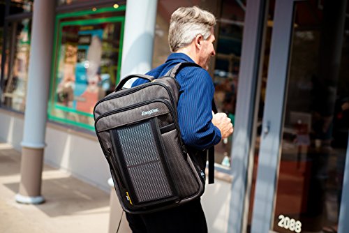 - The integrated solar panel is water resistant and designed for the harshest conditions. Can withstand shocks, drops and minor punctures. Prevent damage to your devices while traveling by tucking them in one of the perfectly sized and secure compartments of the durable backpack.