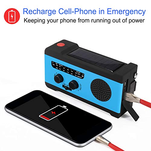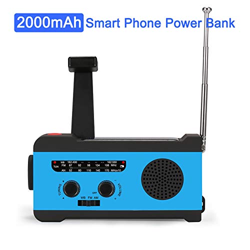 CrazyFire Solar Hand Crank NOAA Weather Radio, Emergency Radio with LED Flashlight and 2000mAh Portable Smart Phone Charger