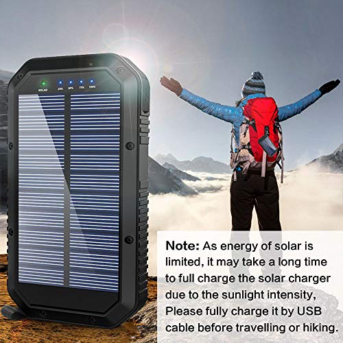 - 【25000mAh Ultra High Capacity Solar Charger】The portable solar charger built-in 25000mAh Li-polymer battery, it’s enough to charge an iPhone XS for 7.4 times, a Galaxy S9 Plus for 5.7 times, an iPad Pro for 1.6 times!