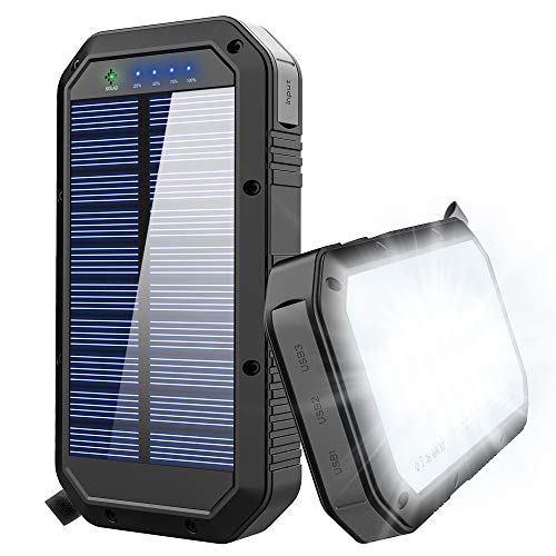 This product has an IPX6 waterproof rating. This rating implies that this solar power bank can very much handle a heavy downpour and still function normally. The LED indicator lights can provide you with information on what means the power bank is charging and the current battery level of the unit. This is relatively considered a bulky solar power bank because it weighs 1.2 lbs. However, this fact is already expected because of its high energy capacity. As for the flashlight, it may be the strongest and brightest flashlight in this list because it has 36 LED lights attached on the back side.