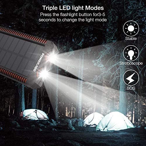 POWERADD Apollo 2 Solar Charger 12000mAh Portable Solar Power Bank Waterproof Battery Packs with Dual Ports Solar Phone Charger for iPhone, Samsung, iPad and More