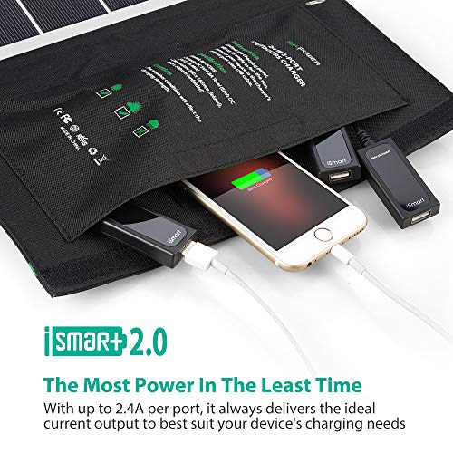 - High Energy Conversion: Ravpower highly efficient solar cells convert up to 21. 5-23. 5% of solar power into free energy. Charge up to two USB devices simultaneously and forget what it feels like to have to look for a socket.