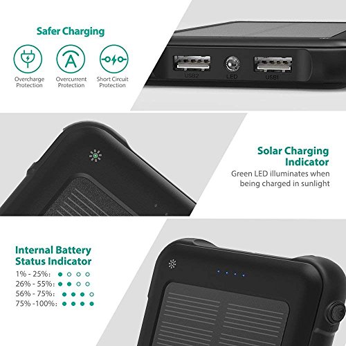 - Frontier Fast Charging: 85% circuit conversion unleashes a blazing fast charging speed, 2.1A under direct sunlight or up to 5.6A max using the 3 USB ports