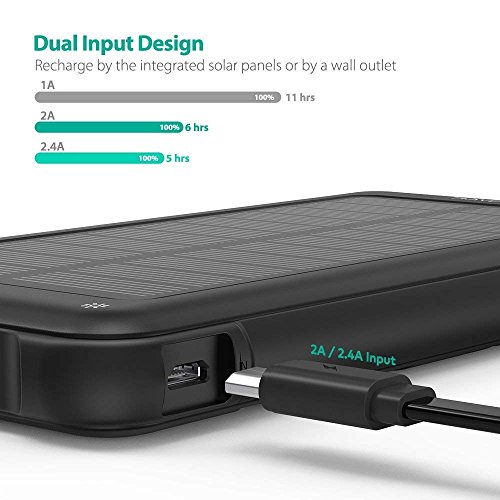 If you are an outdoor enthusiast or you love adventure traveling, you will not go wrong with the RAVPower 16W Panel. This unique solar panel can convert the right amount of energy you need each time you plug in a device and keep you moving. You can also hang it anywhere you need and let it charge under the sun. If you are not using it, you fold it together like a notebook and store it back in your backpack. But, you will need to double-check if your device works well with this solar panel because there are reports it has limited device support. It also only has solar charging, which can be inefficient if there is not much sunlight around you to get solar energy.