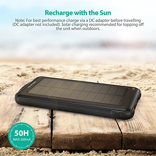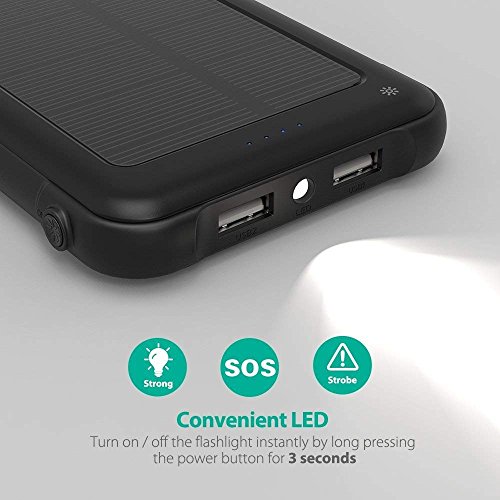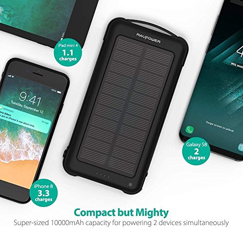 RAVPower Solar Charger 10000mAh Power Bank with LED Flashlight Shockproof Portable Battery Pack with iSmart 2.0 and Dual Input for XS/XS MAX/XR, Galaxy S9/S8 and More Mobile Phones