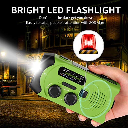 - 【A MUST-HAVE FOR THE EMERGENCY】This emergency weather radio not only dependably receive up to the newest emergency weather forecasts from NOAA and AM/FM stations to be well prepared advanced; Also, A 2000mAh large capacity battery can provide emergency power to any small tablet or phone, the brighter LED Flashlight and reading lamp could light up your darkness. The SOS Alarm, external antenna, comfortable hand crank, tap switch fit all your needs in emergency.