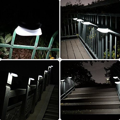 - 【NEW DESIGN INSPIRATION WITH 9 PCS SUPER BRIGHTER LEDs】: This solar fence lights unique shape looks like a UFO landing on a fence, eaves, walls or other places where you are installing. It is a very ideal decorative light for your house garden or pool, with good solar panel 2V 250mA ,9pcs 3528 led source with larger solar panels and 1.2V 1500mAh rechargeable battery, make sure to more brighter than old gutter lights.