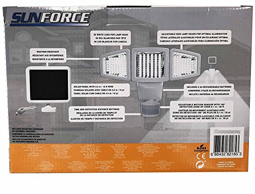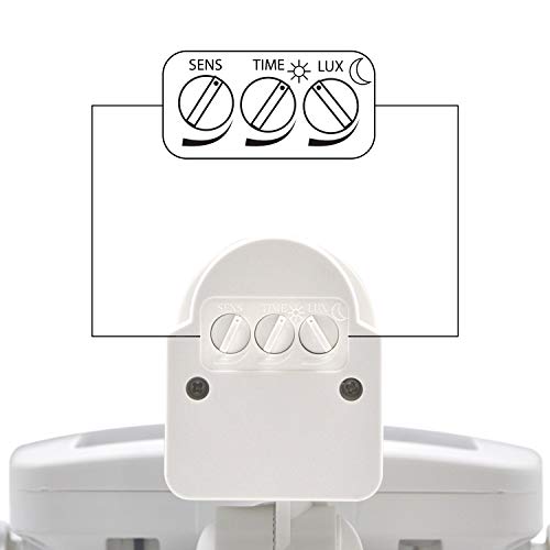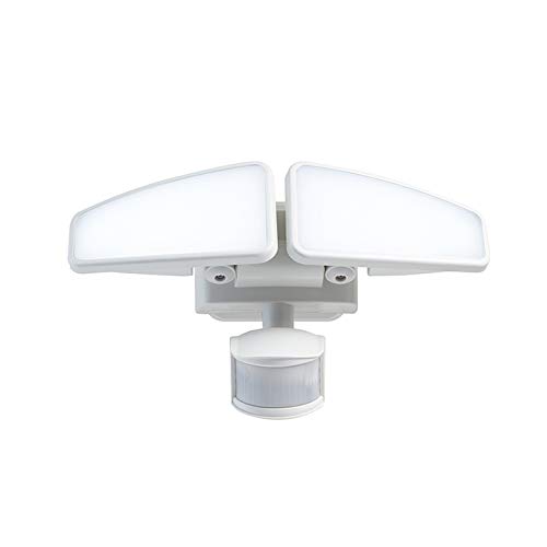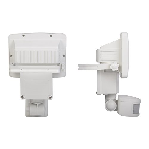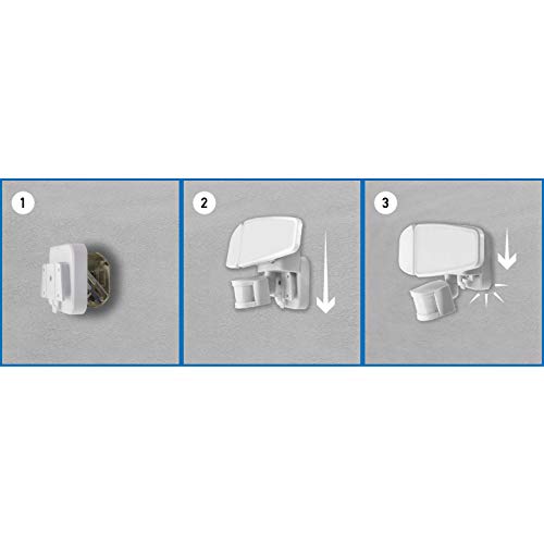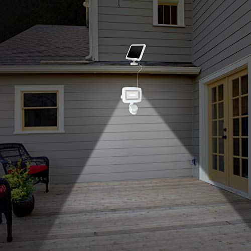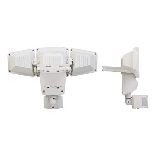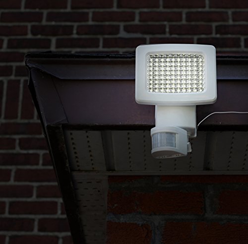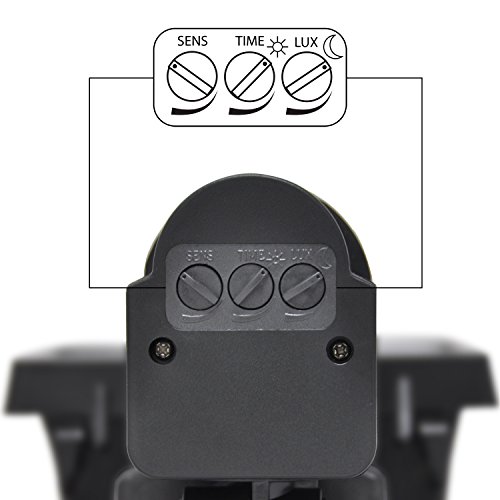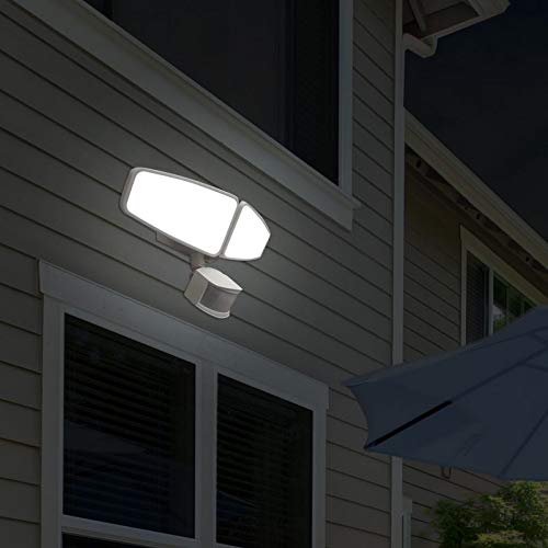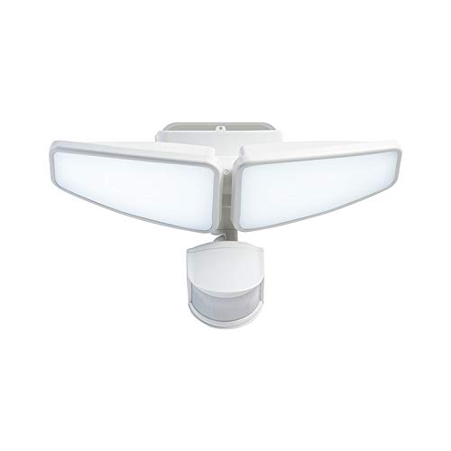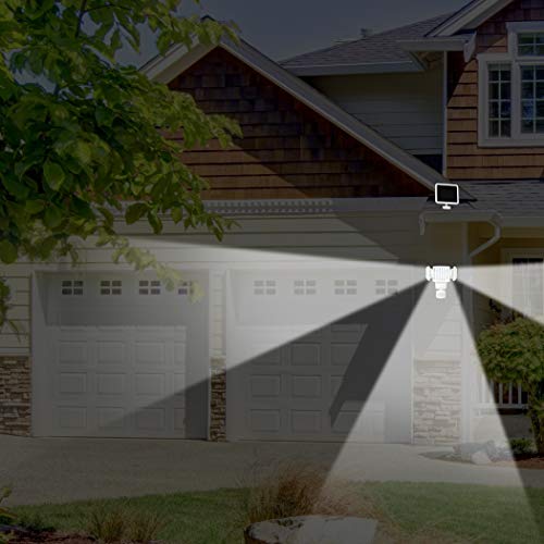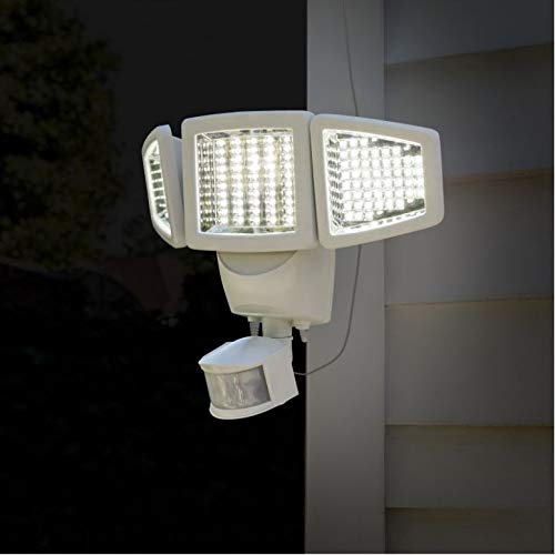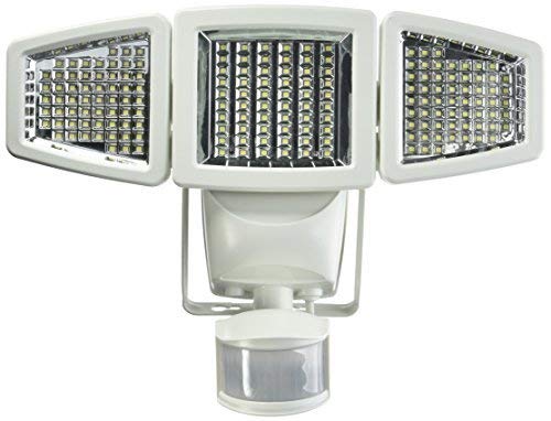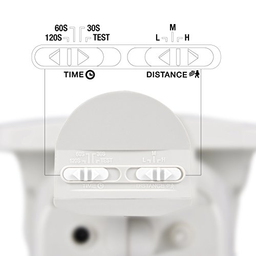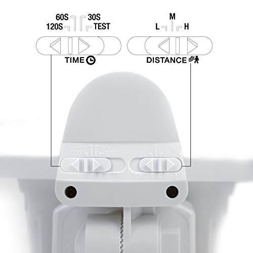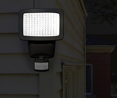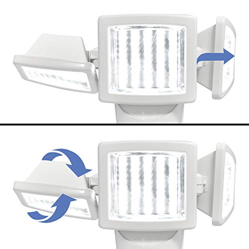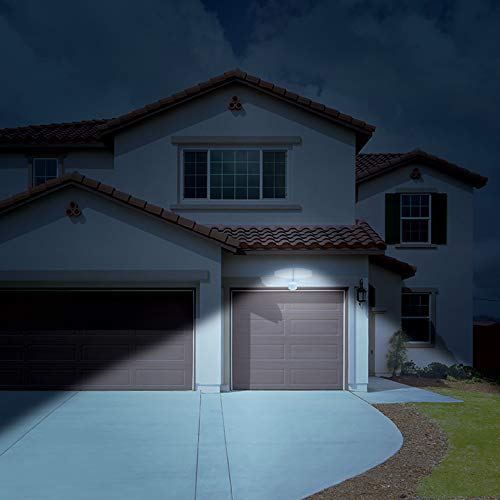 The powered motion sensor can detect movement up to 30 feet (one of the highest range among motion sensor lights) with an angle range of 180° (wider than most products that only reach to 120°). The product also has a weatherproof design that allows it to be mounted anywhere in the house. The best feature of this LED security light is that you can adjust the time that you want the light to stay on when it detects motion.