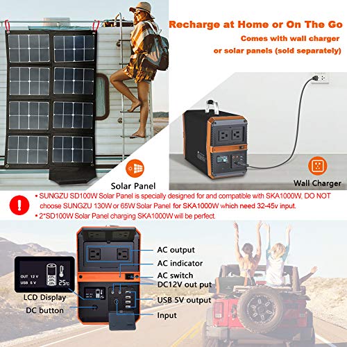 SUNGZU Portable Power Supply 1000W Generator for Outdoors Camping Outages Emergency 1010Wh Portable Power Station 2 110V AC Outlet 2 DC 4 USB for Home and Outdoor Camping