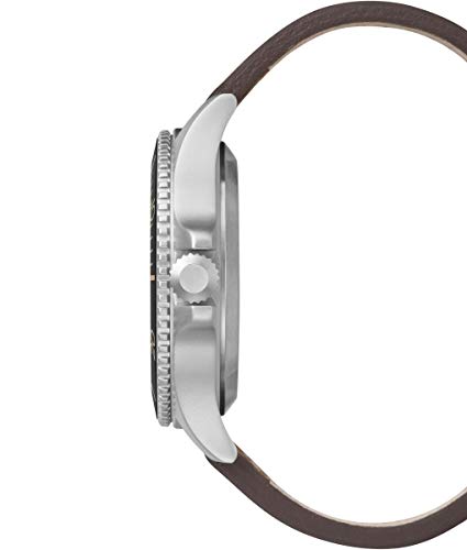 - Silver-tone 43mm brass case with mineral lens; luminous hands