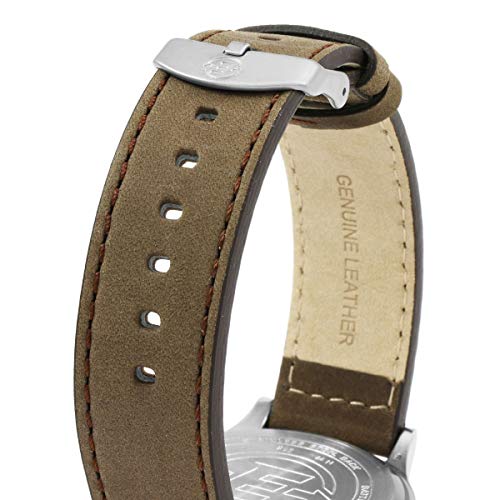 - Adjustable tan textured 20mm leather strap fits up to 8-inch wrist circumference