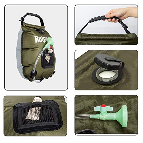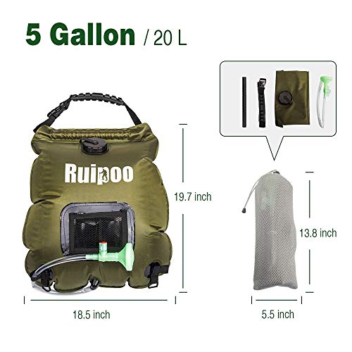 Solar Shower Bag Camp Shower with Removable Hose and On-Off Switchable Shower Head for Camping Beach Swimming Outdoor Traveling Hiking (5 Gallon) (Army Green)