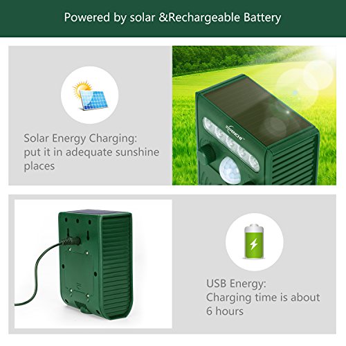 ZOVENCHI Ultrasonic Animal Repeller, Solar Powered Repeller, Activated with Motion, Ultrasonic and Flashing LED Lights Outdoor Waterproof Repeller for Dogs, Cats, Foxes, Mice, Birds, Skunks, Etc.
