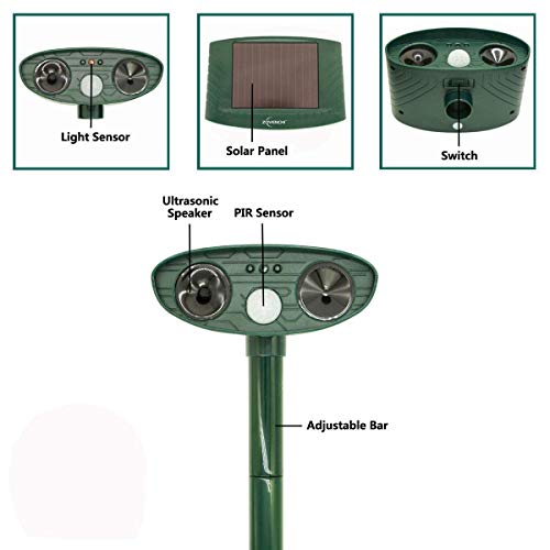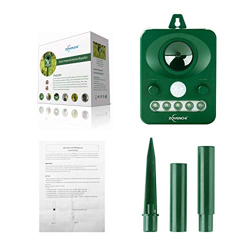 ZOVENCHI Ultrasonic Animal Pest Repeller, Outdoor Solar Powered Pest and Animal Repeller, Waterproof Deterrent Scarer - Motion Sensor, Repels Cat, Dog, Rabbits, Fox, Raccoons, Skunk, Rats